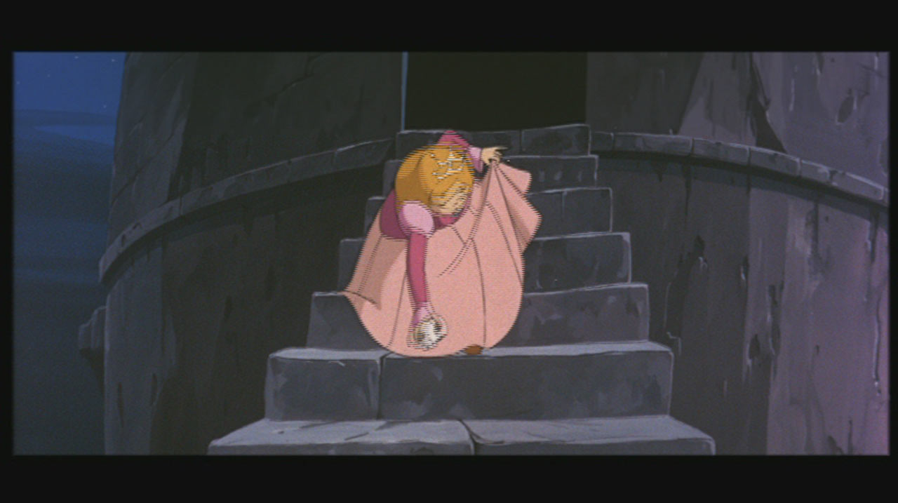 The English audio is kinda busted…It’s sort of in stereo, but not really: It’s very choppy and sounds as if voices or music will drop out entirely at any given time. It also sounds as if it’s weigthed far to the left…To be honest, I thought it was mono at first. It even says, “Dolby Digital Mono”…I don’t know, it’s weird…The Japanese channel is much nicer. But since I grew up watching the English dub (in glorious 4:3) I was kind of hyped to hear a good English mix. Oh well. It’s good enough. It works.