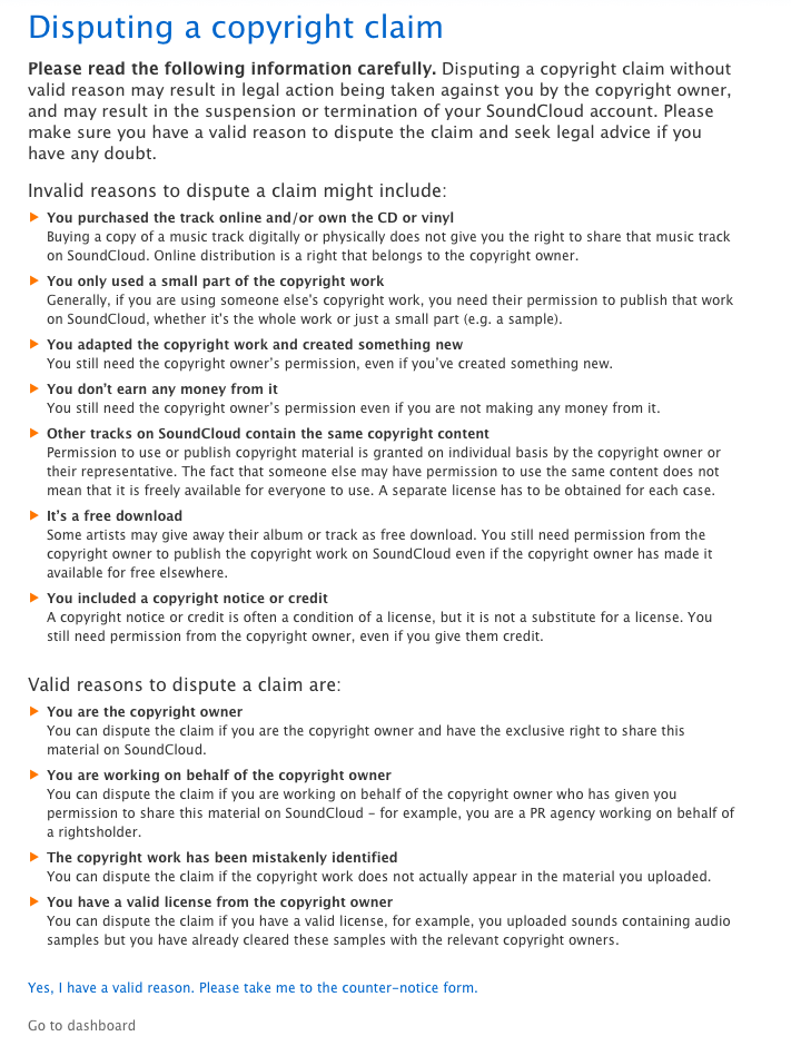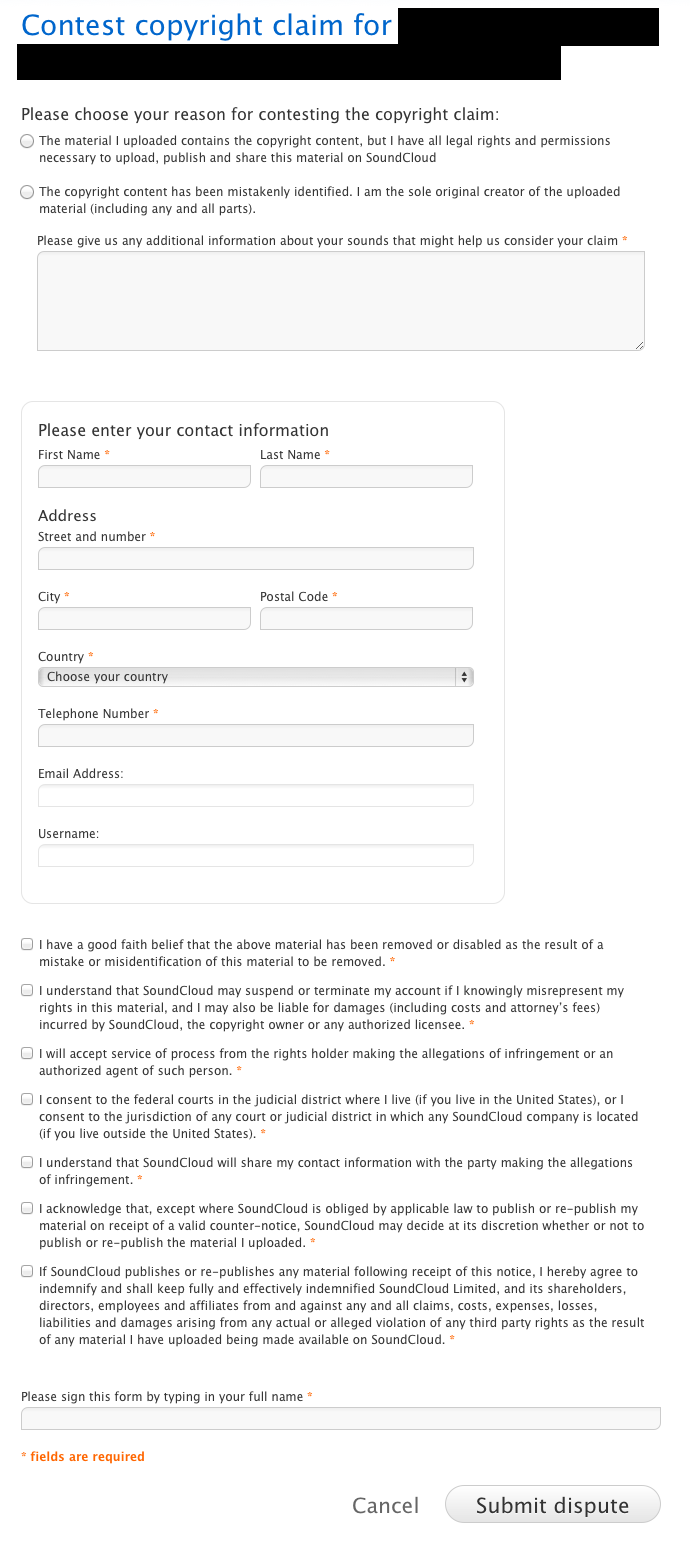 – SoundCloud.com: Disputing a copyright claim (Image)